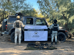 Hermosillo, Son. Octubre 21 de 2024.- La Guardia Nacional (GN), en coordinación con el Ejército Mexicano, decomisaron dos vehículos todoterreno y arsenales, tras de operativos realizados en Santa Ana y San Luis Río Colorado, Sonora.